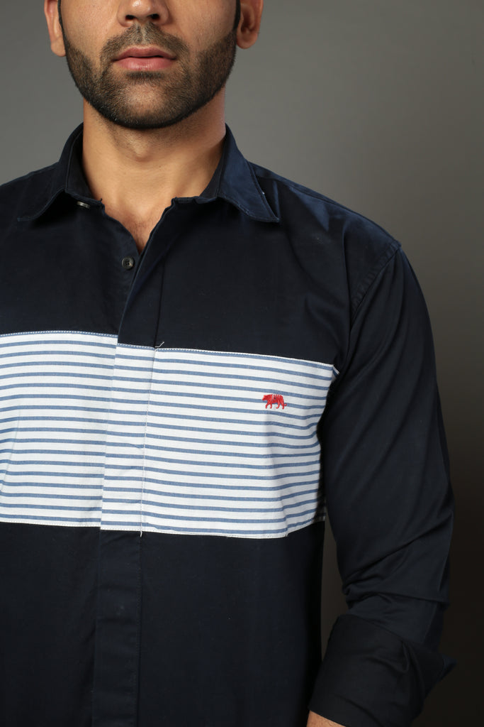 Navy Blue & Blue lines Slim Fit Casual Shirt