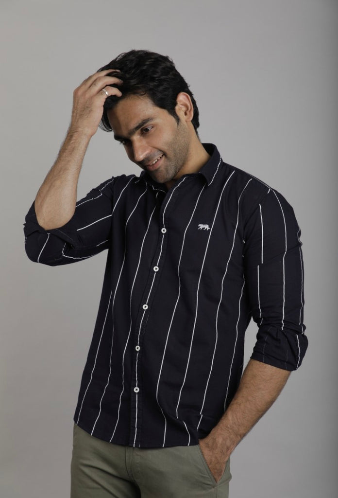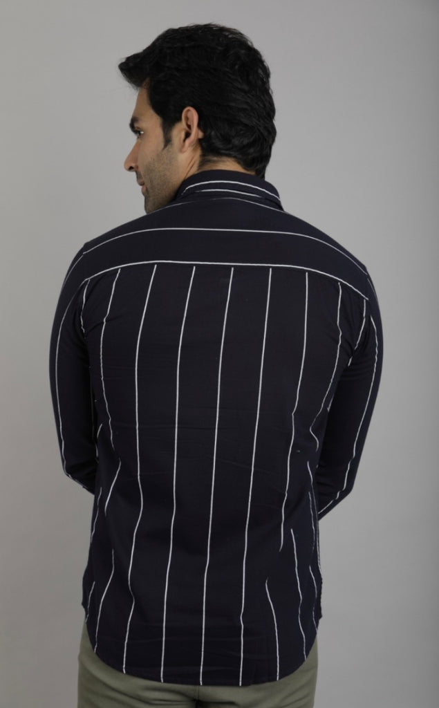 Navy blue Stripes Full Sleeves Slim Fit Casual Shirt