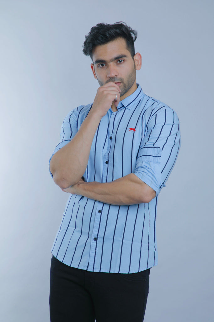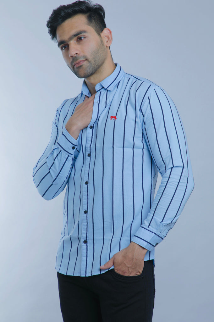 Sky Blue Stripes Full Sleeves Slim Fit Casual Shirt