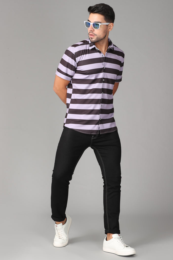 Strechable fabric with multicolored Slim Fit Casual Shirt, has a spread collar, long sleeves, button placket, and curved hem