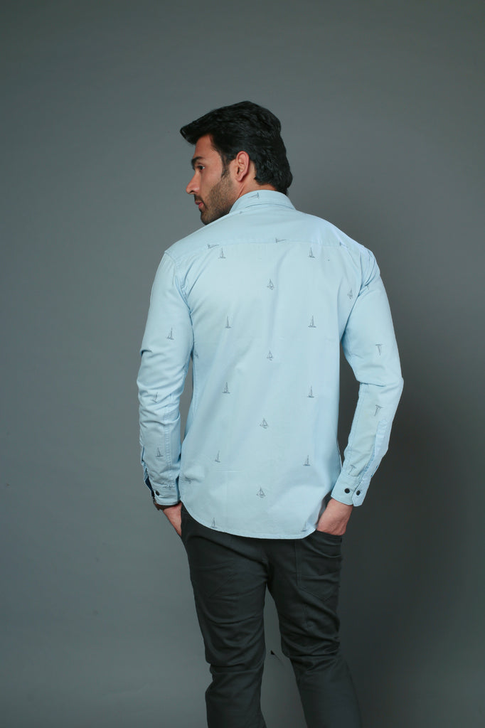 Men Designer Printed Yacht Slim Fit Casual Shirt