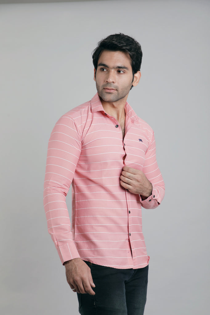 Men pink and white Stripe Slim Fit Casual Shirt