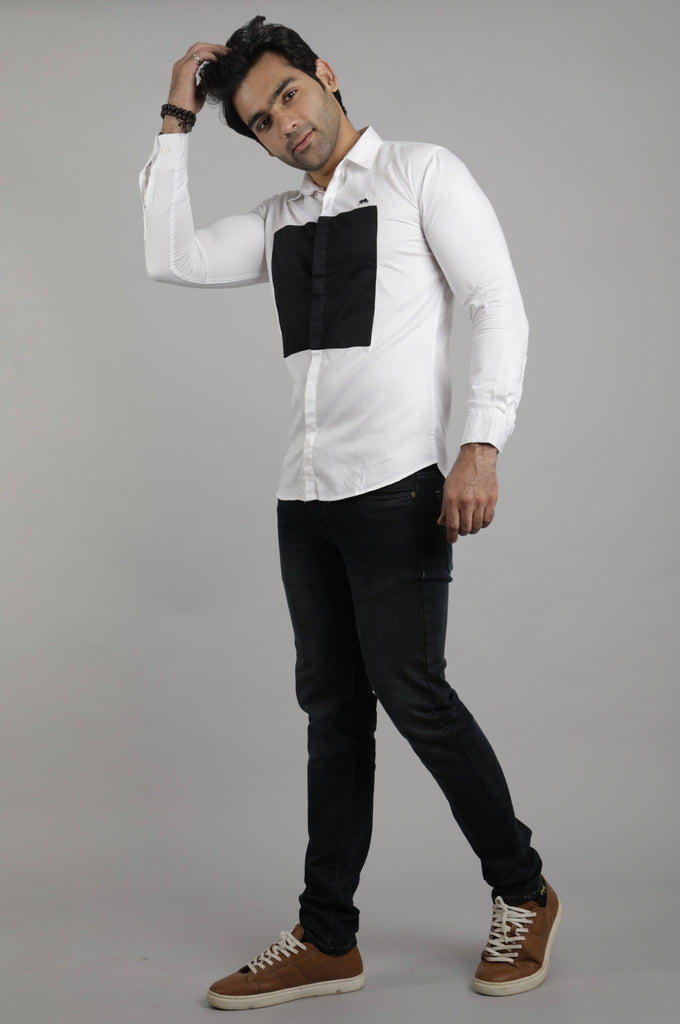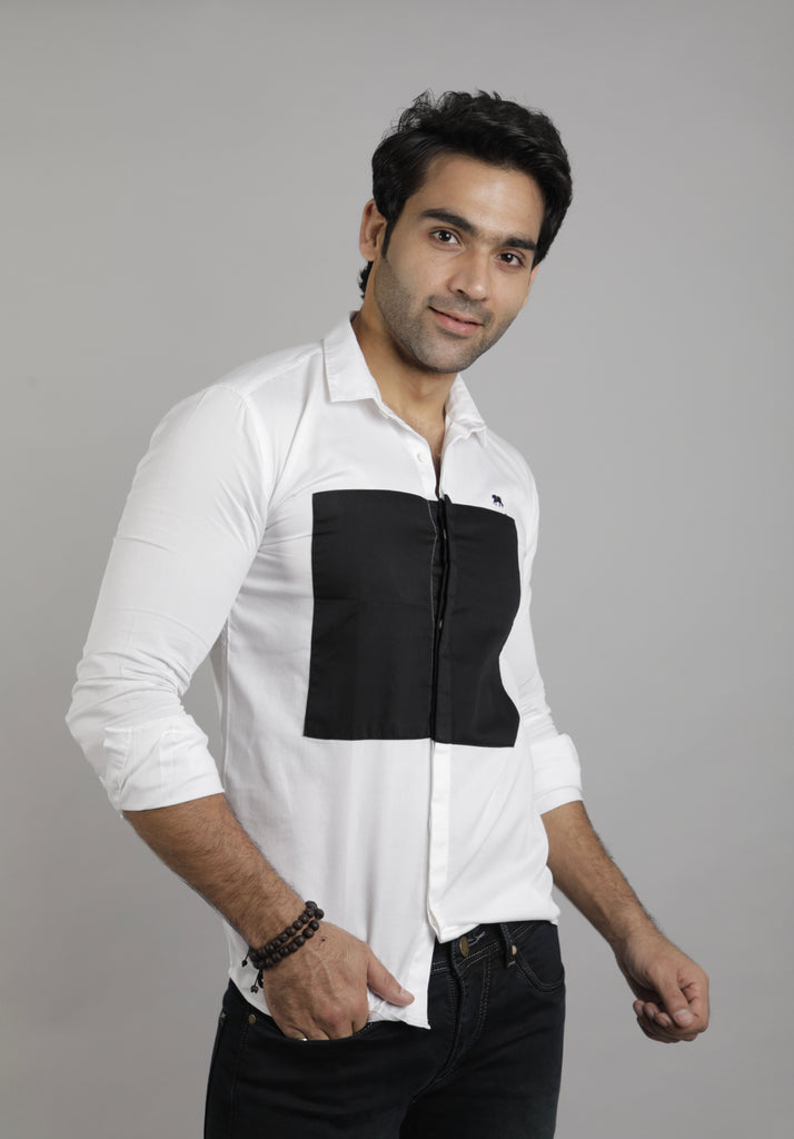 White and Black Box Slim Fit Casual Shirt